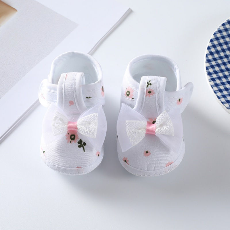 Baby Girl First Walker Shoes Soft Sole Floral Bow Crib Toddler Shoes