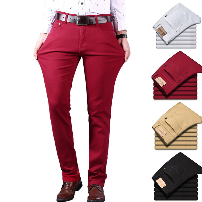 Spring Autumn Men's Blue Slim Fit Micro-Elastic Straight Denim Jeans Trousers