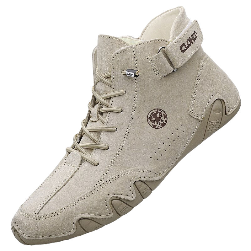 Mens Genuine Leather Ankle Boots Lightweight Outdoor Lace Up Sneakers for Winter