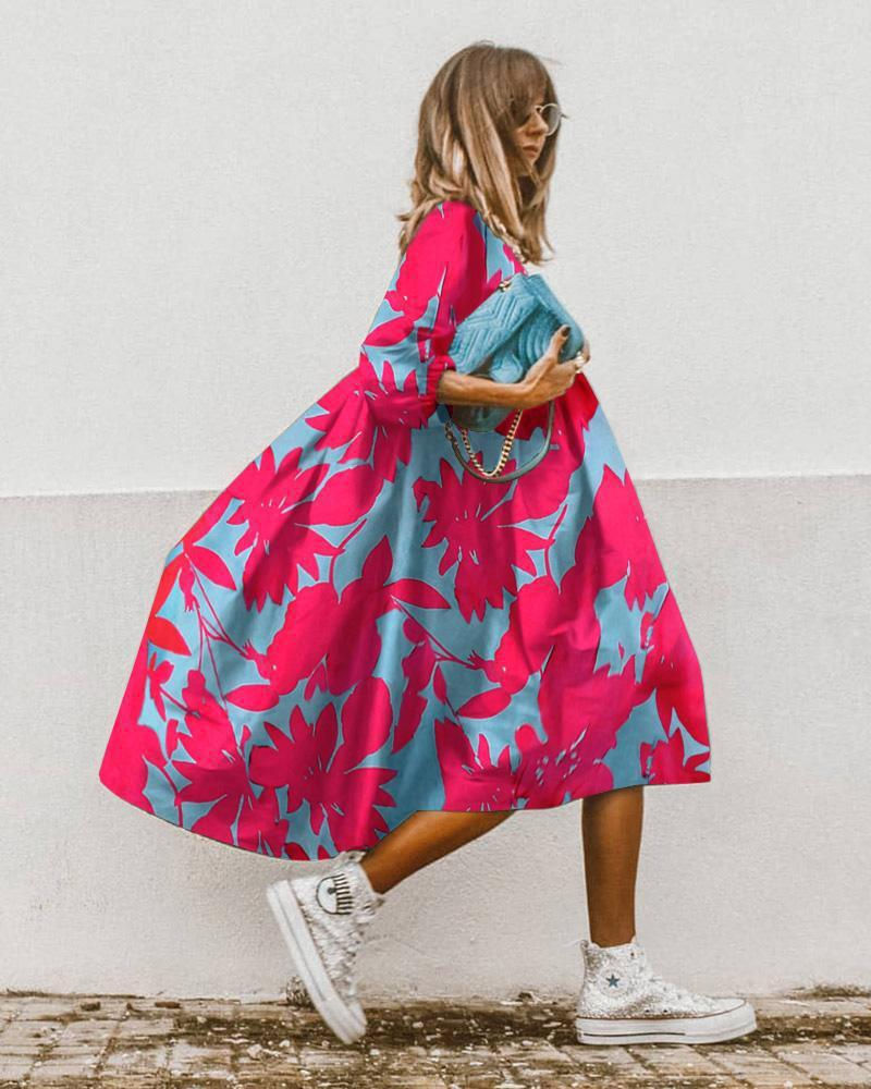 Early Autumn Elegant Sexy Red Maple Leaf Print Dress for Women Stylish Outfit