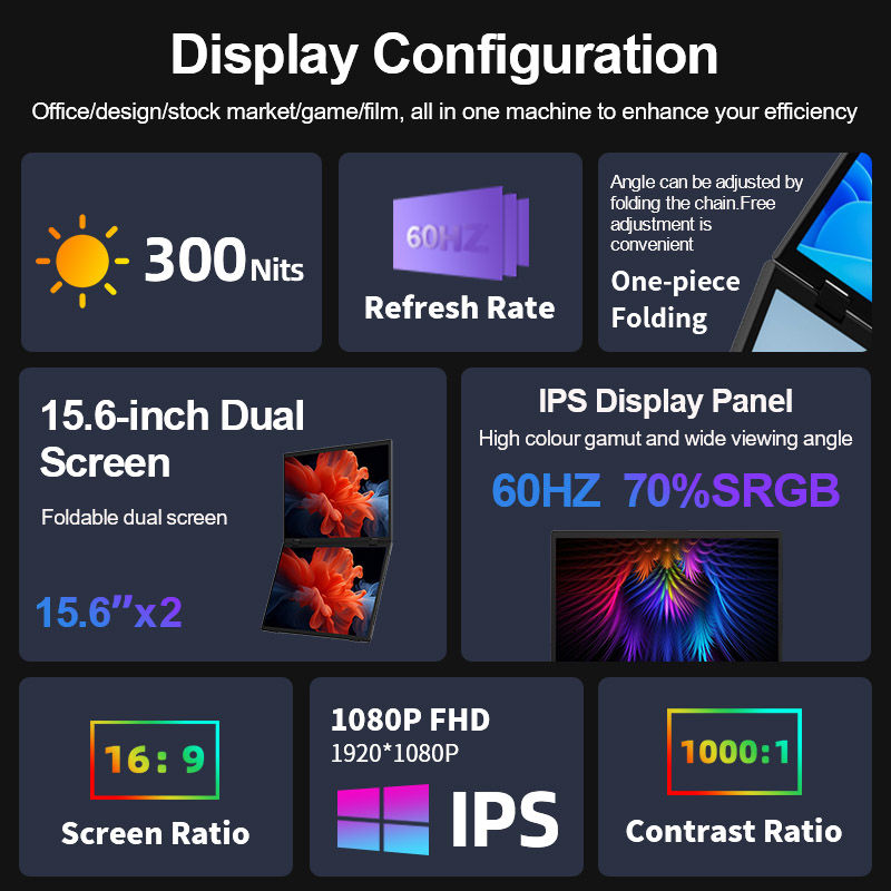 15.6-Inch Portable Dual Screen Monitor – Foldable Triple Display