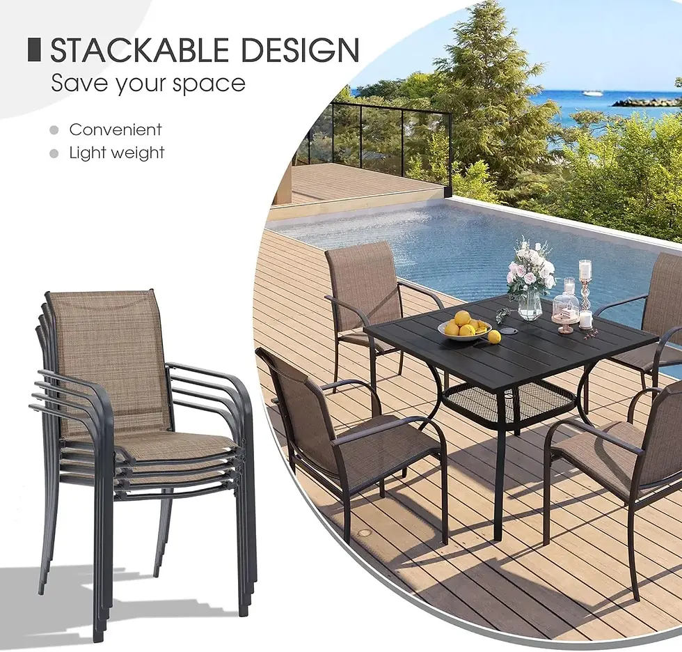 5-Piece Patio Dining Set – Modern Square Table with 4 Folding Chairs in Brown