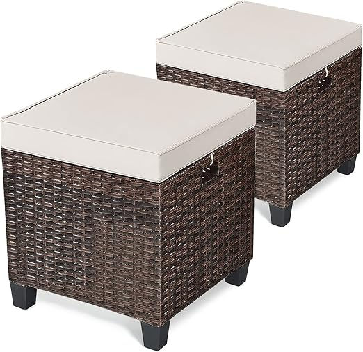 Set of 2 Wicker Ottomans with Hidden Storage and Cushions – Outdoor Patio