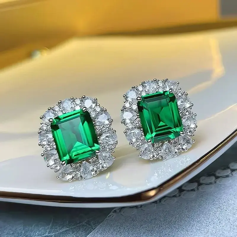 CAOSHI Green & White CZ Stud Earrings for Women – Elegant Push-Back Design